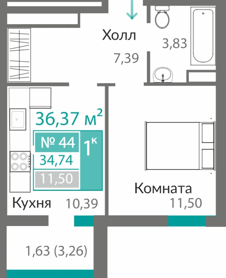 34.37 м2
