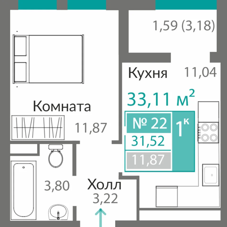 1-комнатная