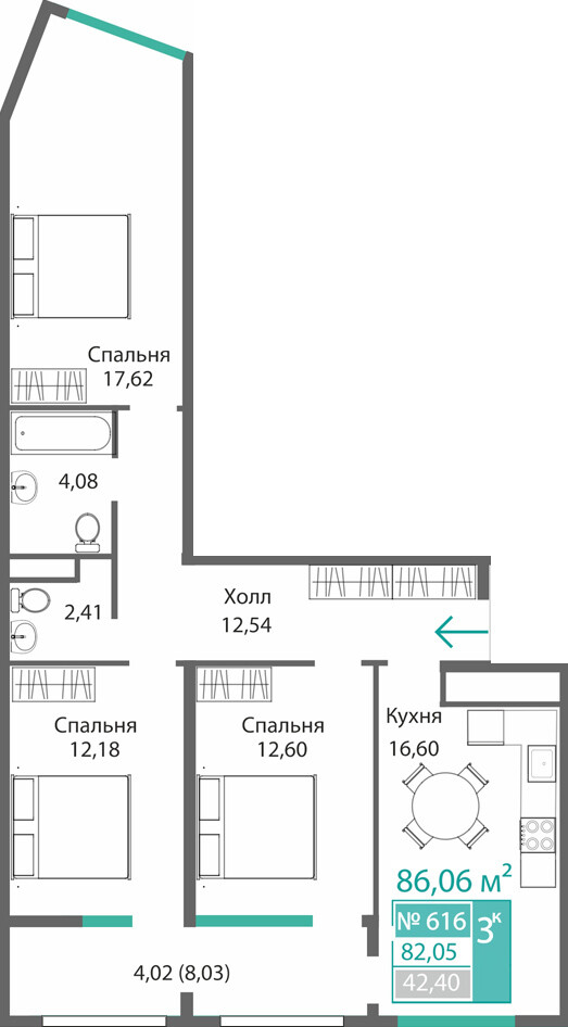 3-комнатная