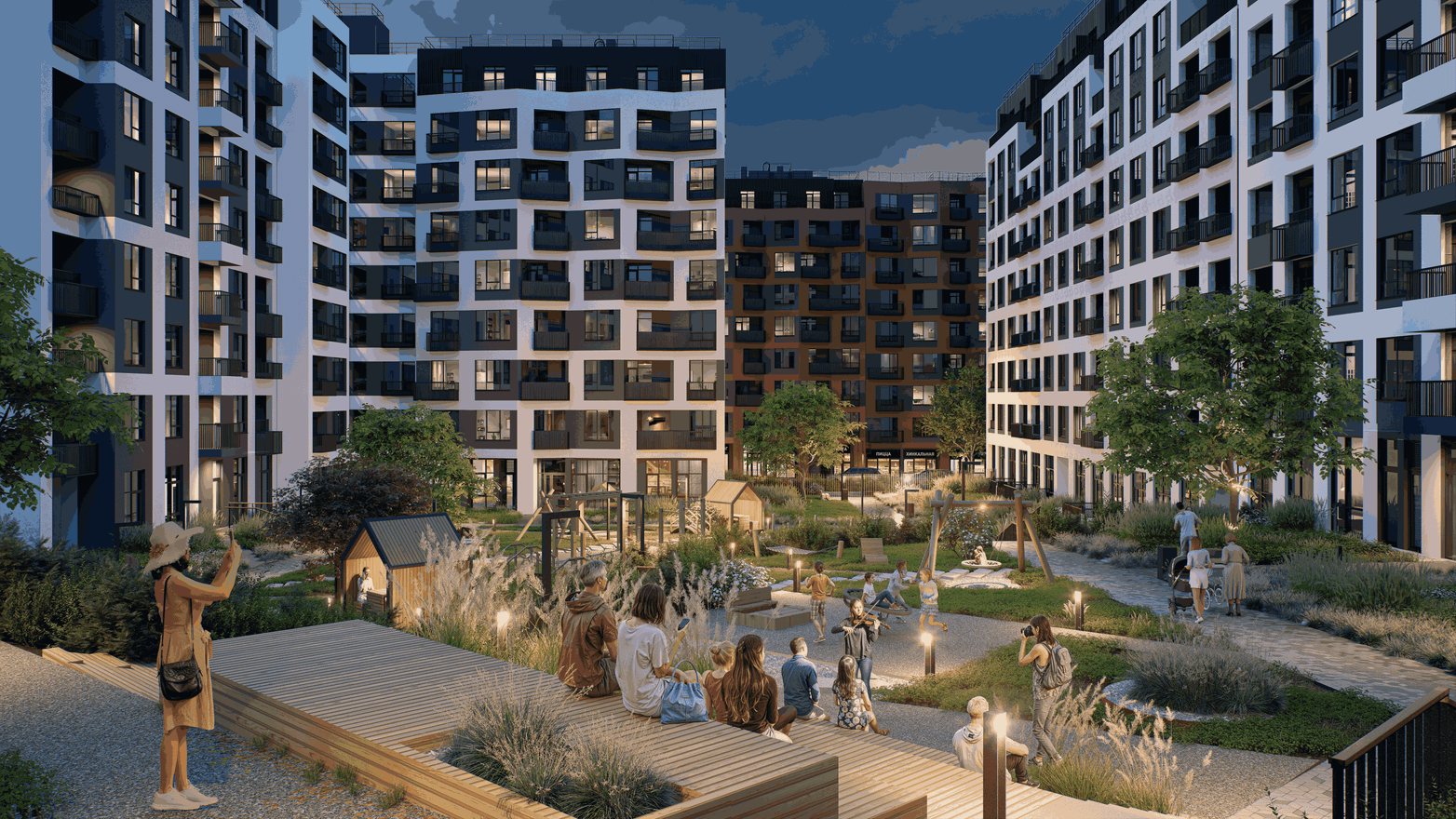 В шаговой доступности — кофейни, магазины, развивающие и спортивные центры, стрит-ритейл, wellness- и бьюти-салоны.