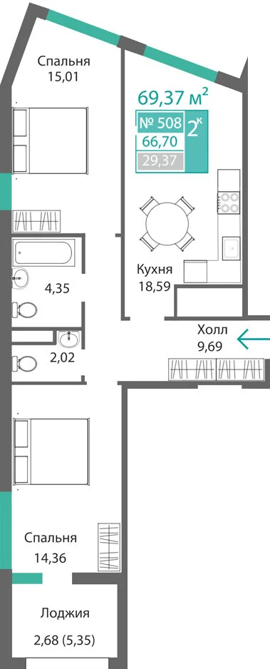 66.7 м2