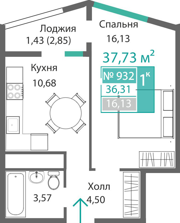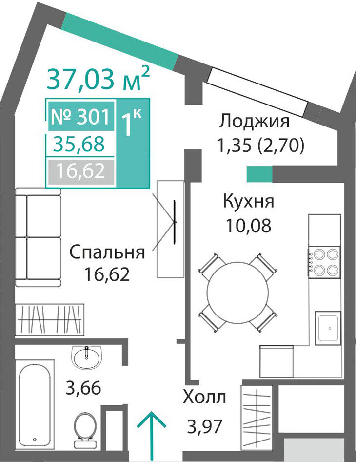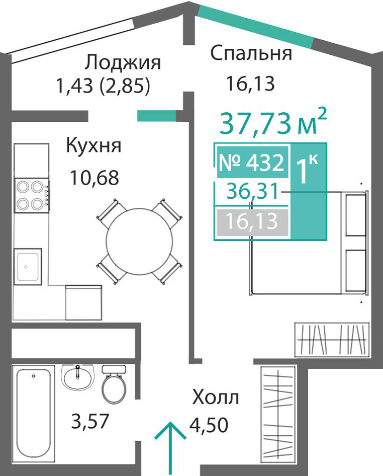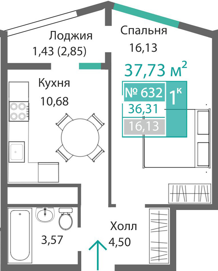 1-комнатная  36.31 м2