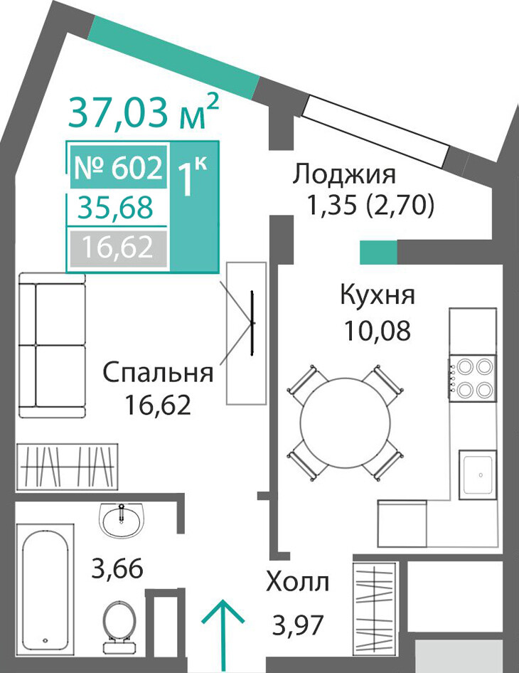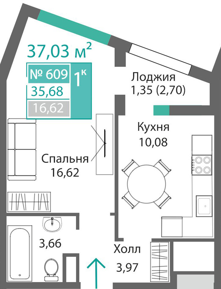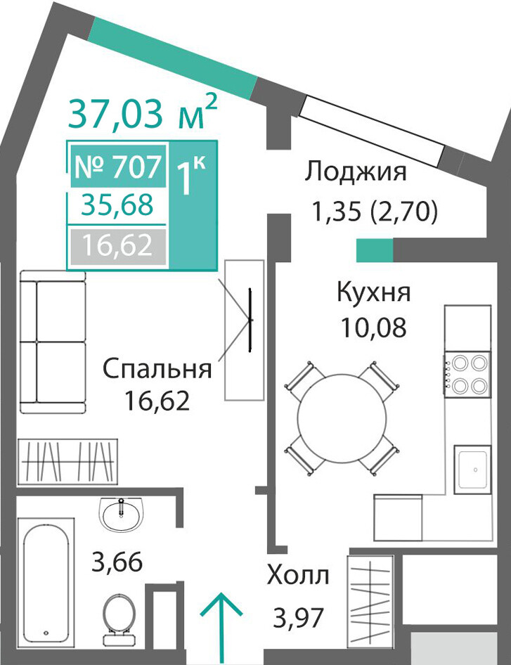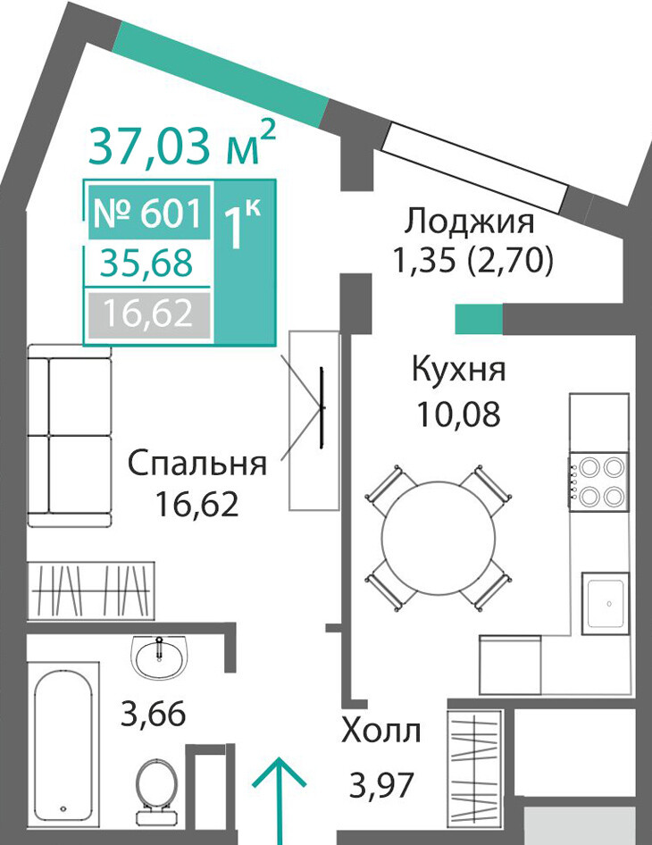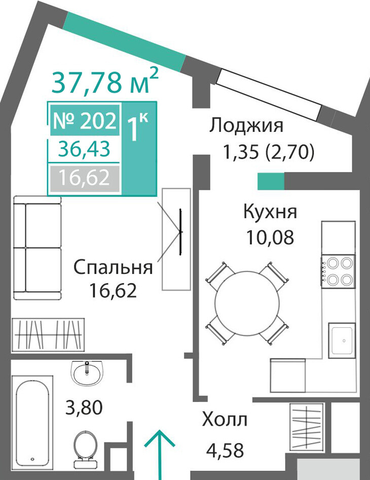 1-комнатная  36.31 м2