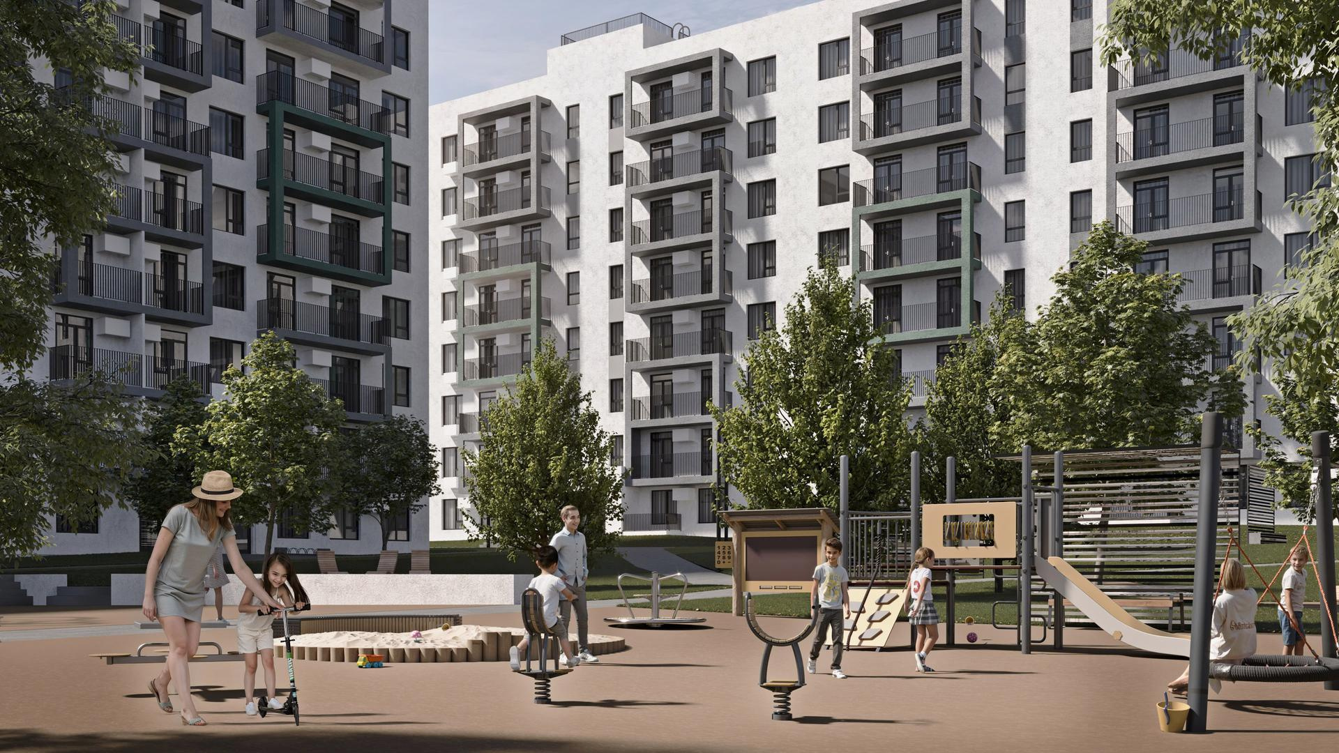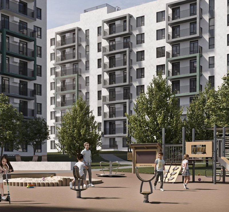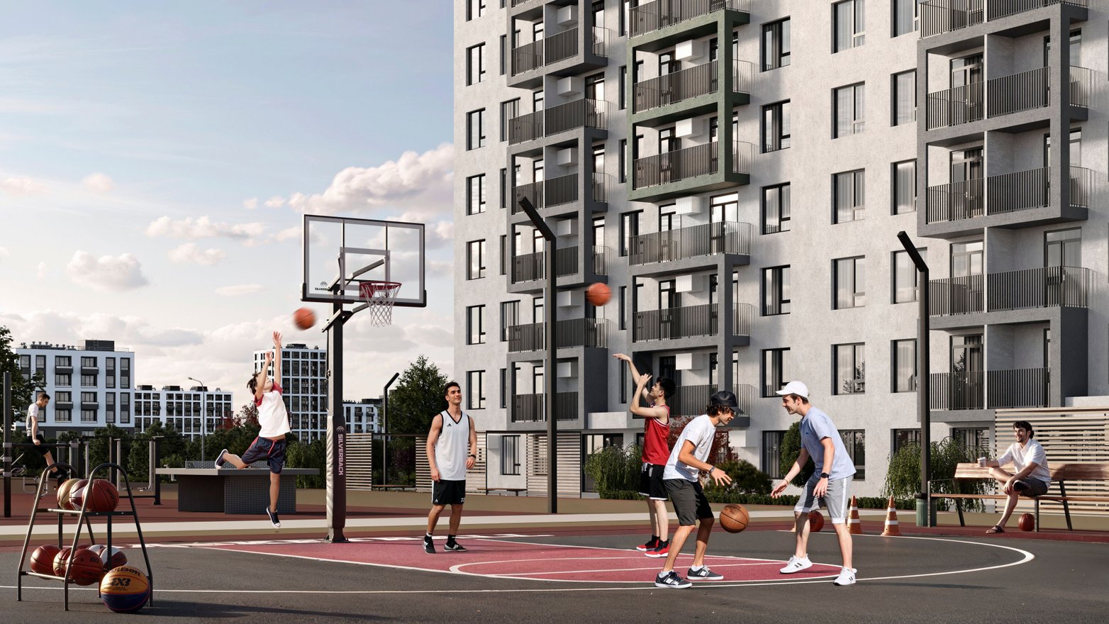 Квартал представляет собой многоквартирный жилой дом с кладовыми из 14 секций со встроенными коммерческими помещениями в виде 9-этажного здания (включая подземный этаж).