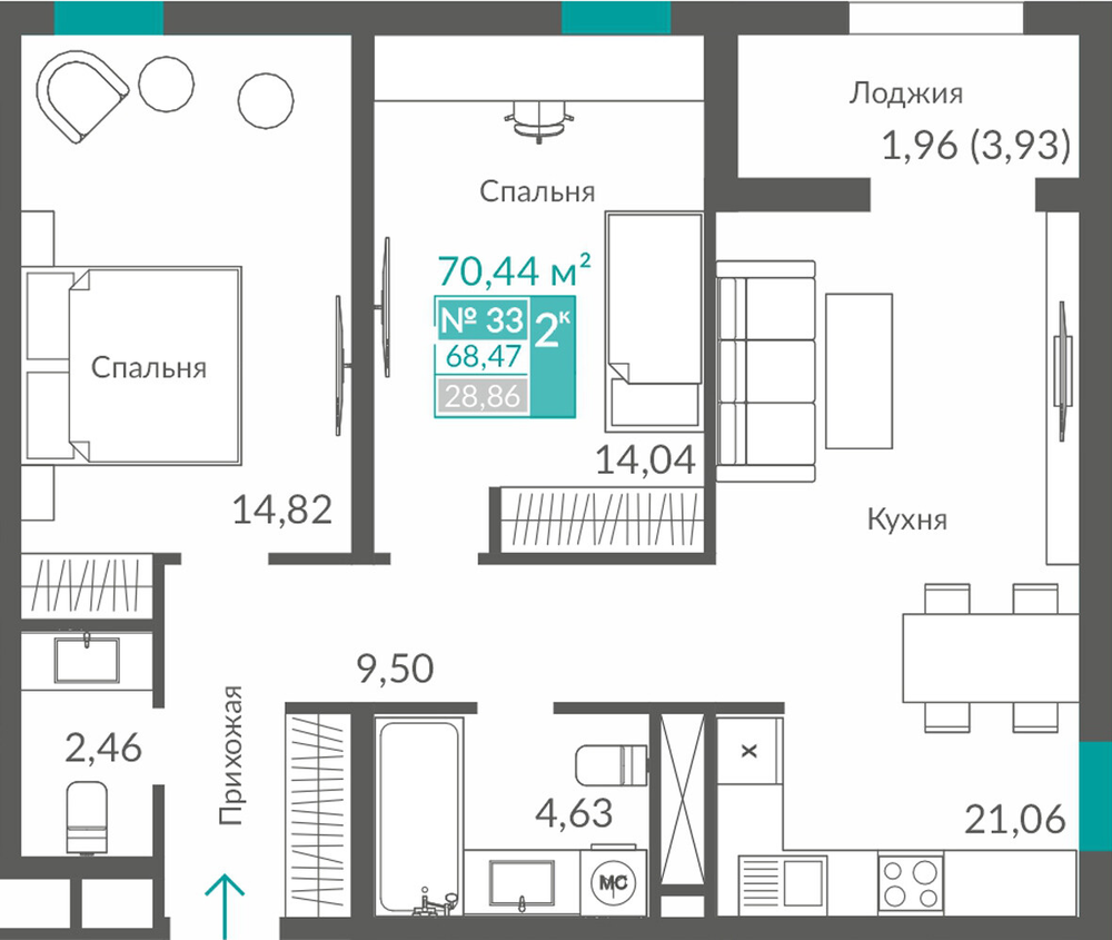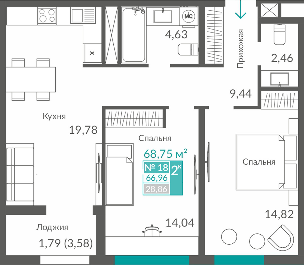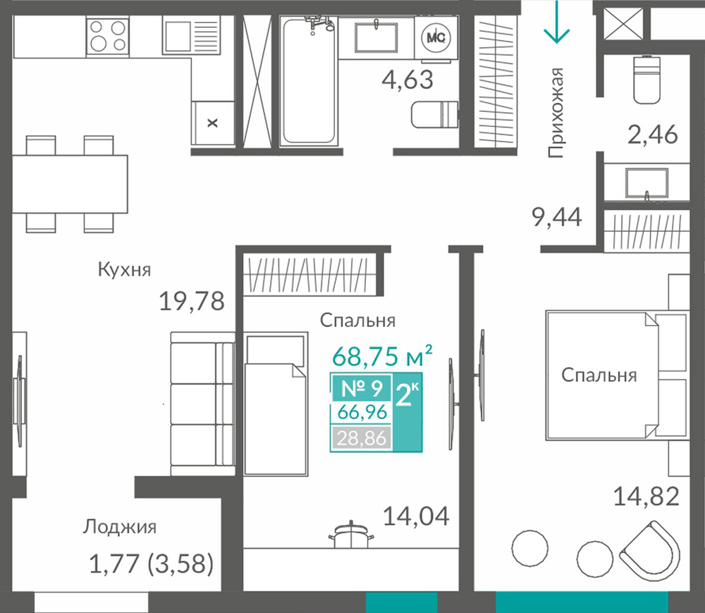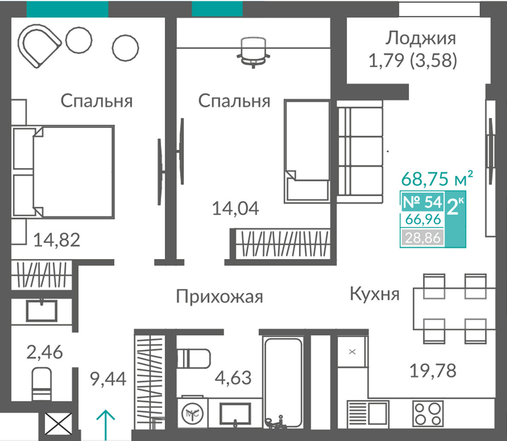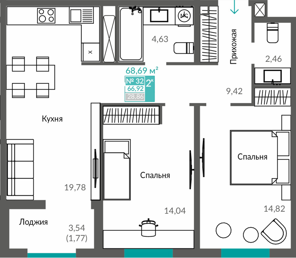 66.92 м2