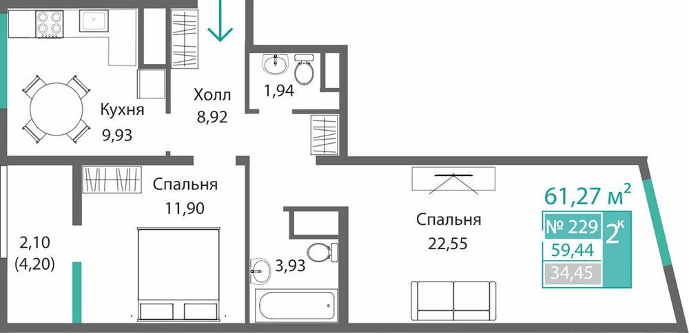 - № 229Квартал БарбарисСекция 3, Этаж 2
