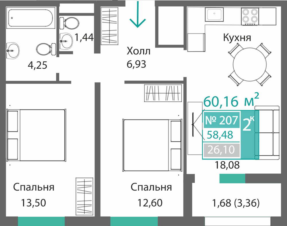 - № 207Квартал БарбарисСекция 1, Этаж 2