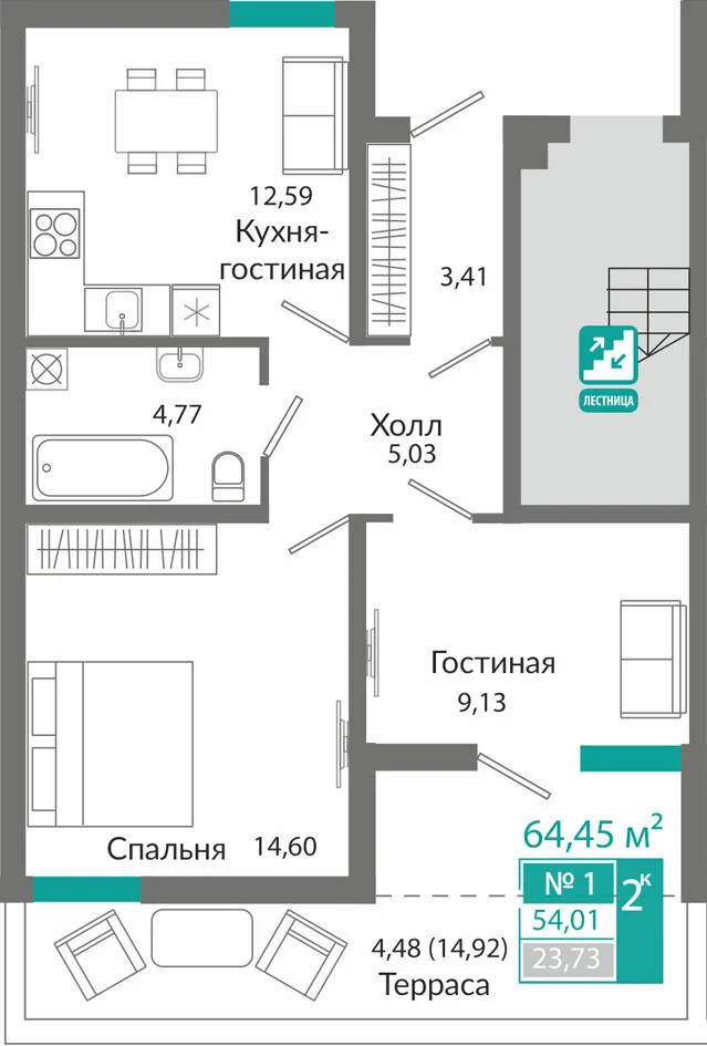 - № 1Горизонты 3Секция 5, Этаж 1