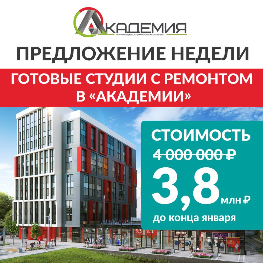 В честь Дня студентов мы дарим подарок – снижаем цену готовых студий с ремонтом до 3,8 млн руб.